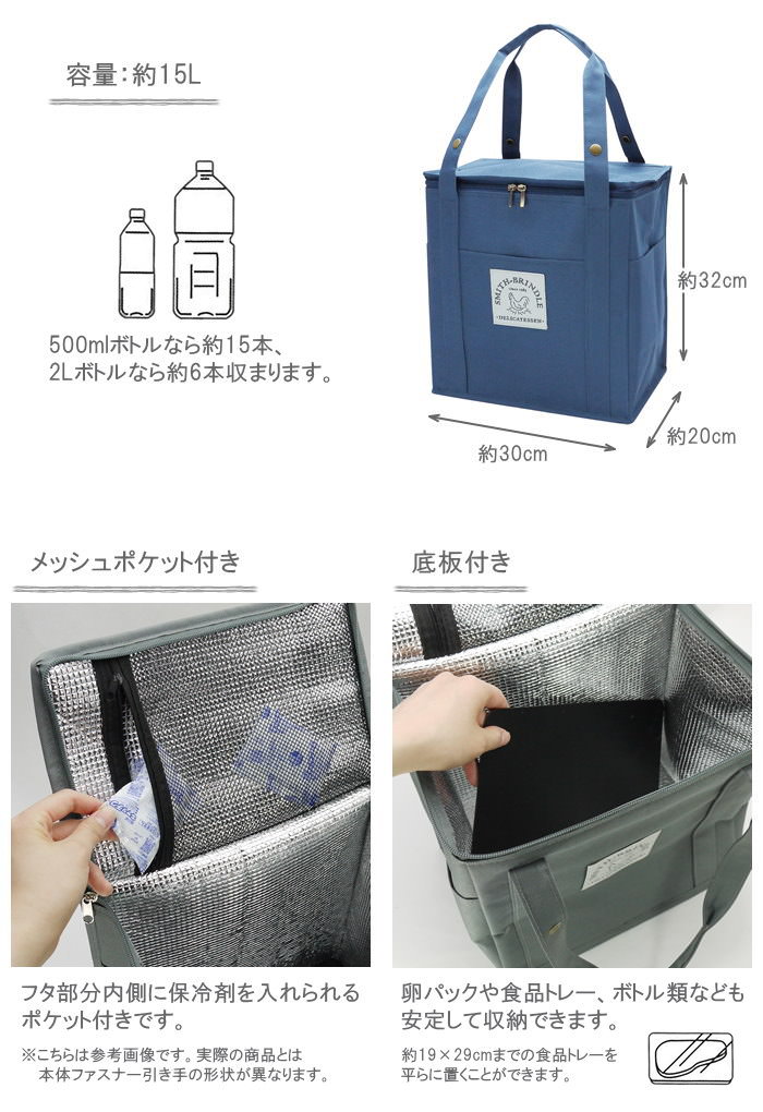 スーパーマーケットのお買い物に便利な普段使いできる保冷バッグは、 きれいめな服装でも持ちやすい、3色展開です。