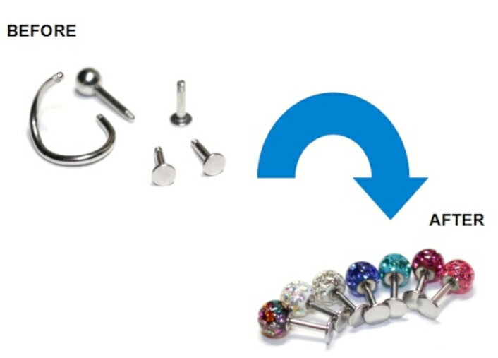 材質: 316L サージカルステンレス 対応ゲージサイズ: 1.2mm (16G)/1.6mm(14G) ボールサイズ: 3mm/4mm/5mm カラー: 選択肢よりお選びください ※ご注意※ パソコン・モニター環境によって若干色合いが変わることがございます。