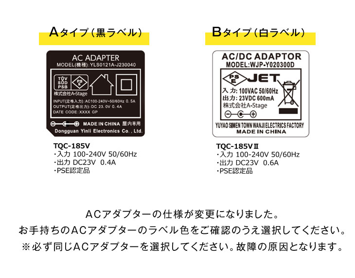必ずご確認ください ※必ずお手持ちのACアダプターを選択してください。