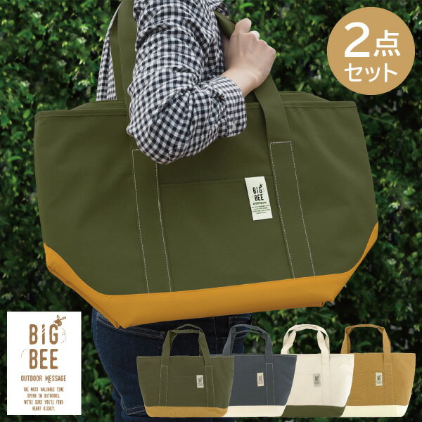 Big Bee クーラートートバッグ M 選べる2点セット 保冷バッグ 大容量おしゃれ かわいい アウトドア 運動会 山登り エコバッグ シンプルレジ袋 バーべキュー BBQ クーラーボックス ピクニック オカトー